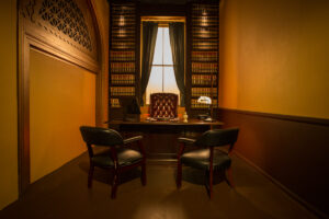 The Courtroom Standing Set includes a full courtroom with Judges Box, Witness Boxes, Audience Area, Plaintiff/Defendant's Desks and a Judges Chamber. Judge and Witnesses Boxes are on wheels and can be moved for greater production flexibility. The dome above the Judge may be lit from behind to give the appearance of a glow. Lots of room and attention to detail. Perfect for small and large film productions.